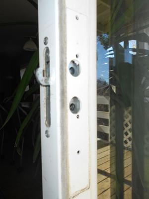 a vinyl glass patio frame and mortise lock broken. Original handle